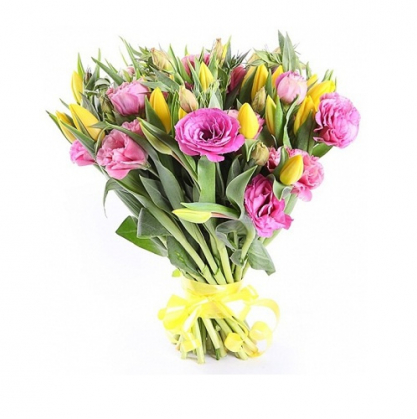 Букет с тюльпанами и эустомой | Заказать в Самуи